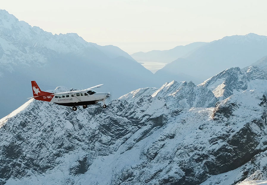 At the end of your Mount Cook adventure, you have the option to add on a fly back to Queenstown. You’ll be taken to Mount Cook Airport, where you’ll meet your pilot for a truly incredible scenic flight. This fixed-wing plane journey lasts approximately 50 minutes, providing aerial views of the Mackenzie Basin, Ahuriri Valley, Lake Wanaka, and the stunning snow-capped mountains, lakes, and rivers in between.