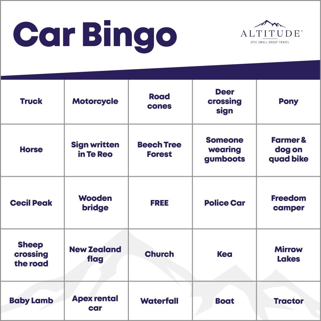 The scenic drive from Queenstown to Milford Sound is one of the most picturesque and breath-taking journeys. But when traveling with little ones, the 12+ hour trip can seem a little daunting. That’s why we’ve created our very own Altitude Tours edition of Queenstown to Milford Sound car bingo.